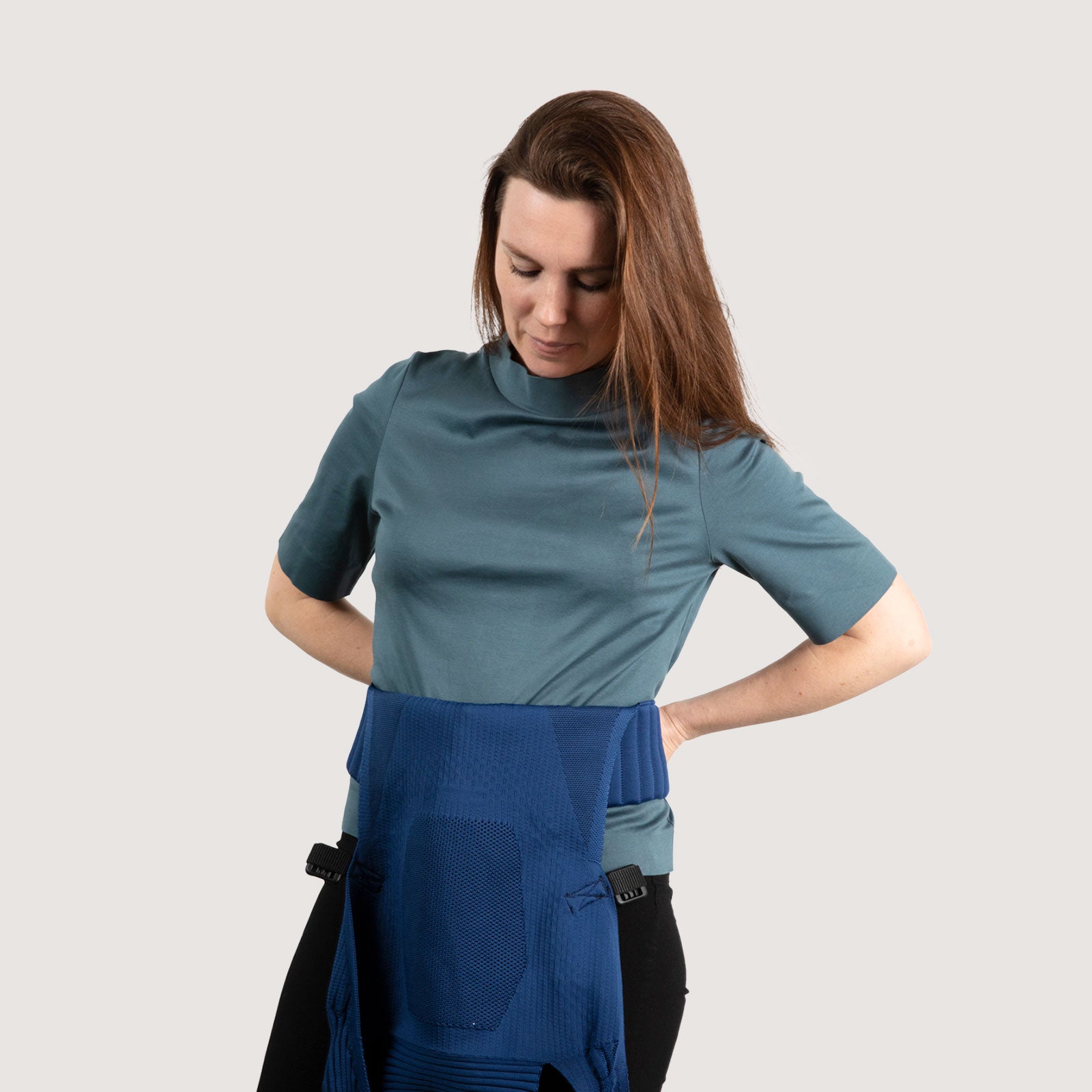 If both magnetic closures are securely fastened, you can adjust the position of the carrier with the straps.