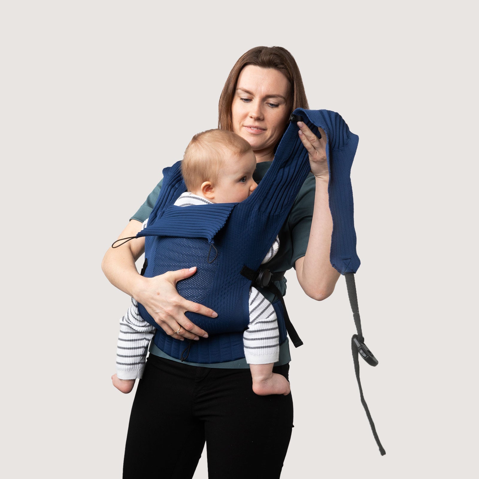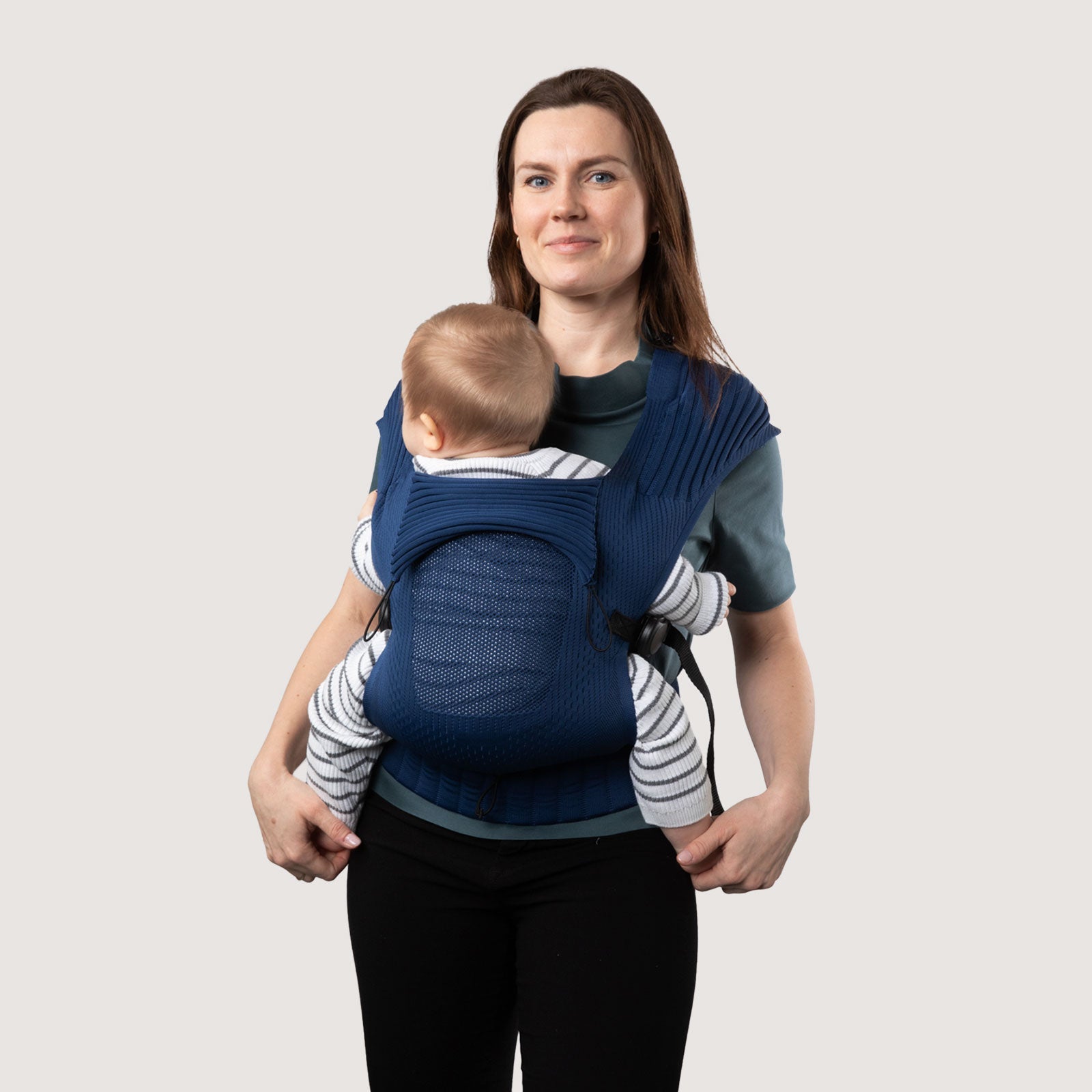Pay attention to your baby's correct squat-splay position. You can find more on the topic of baby wearing here.