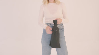 Lead the left shoulder strap diagonally across your back and secure it with the magnetic closure on the right side.